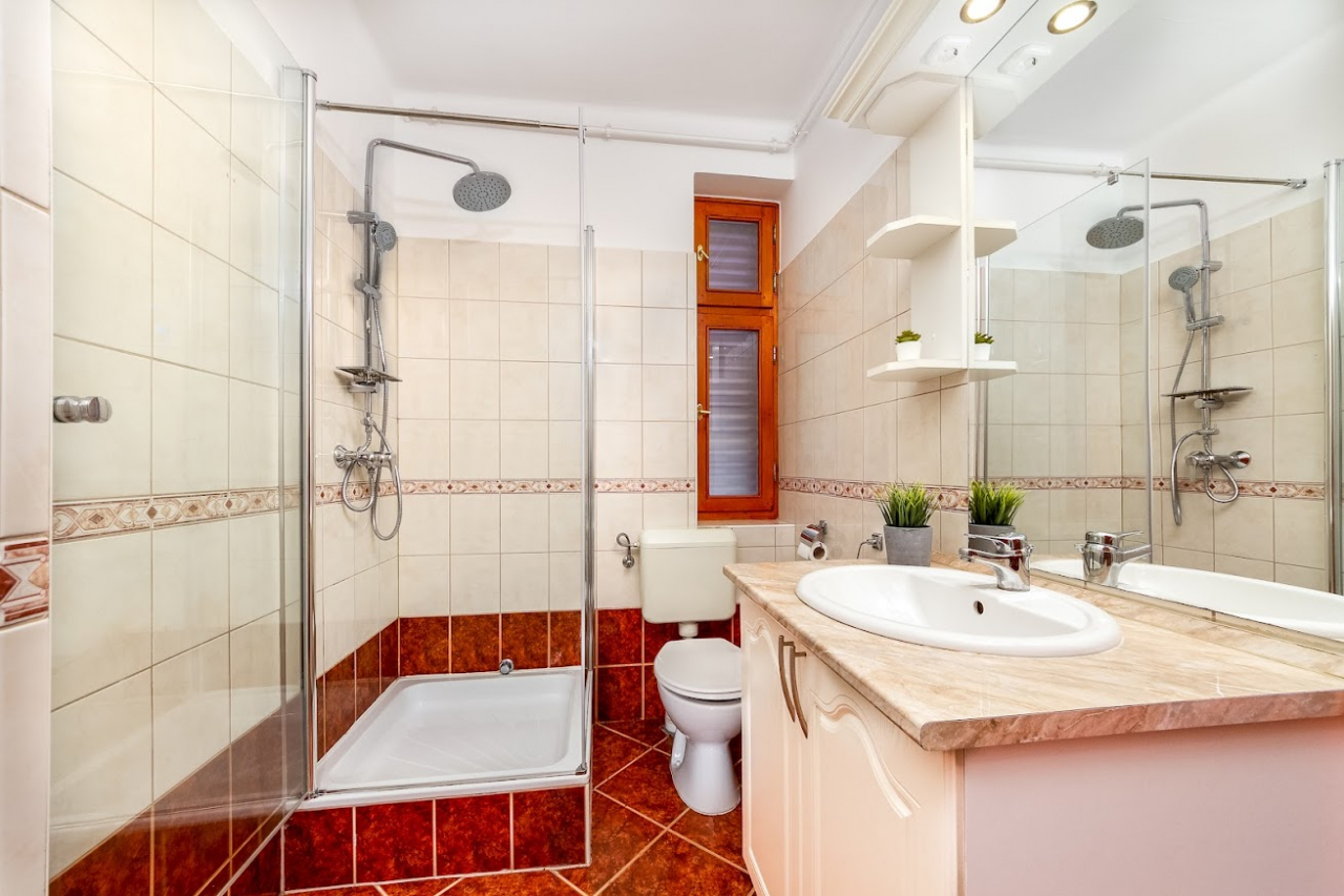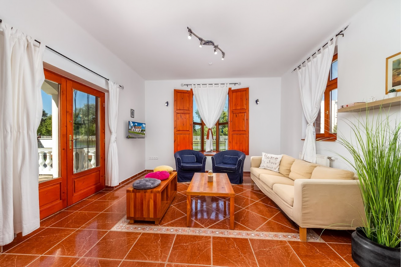 Földszint: Nappali főző- és étkezősarokkal, zuhanyzó/WC, egy kétágyas szoba, fedett terasz.