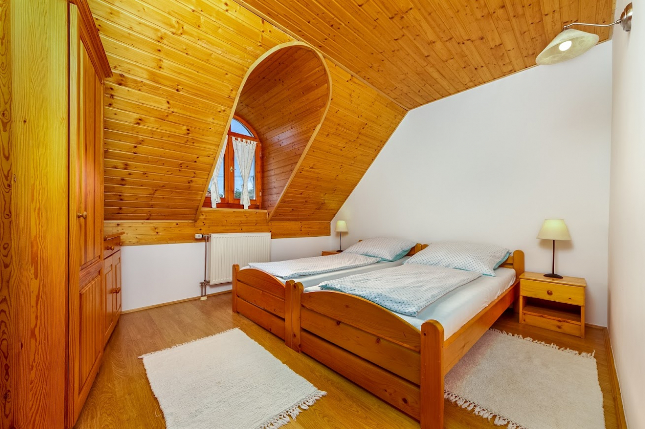 Emelet: Fürdőszoba/WC, három kétágyas szoba, balkon.