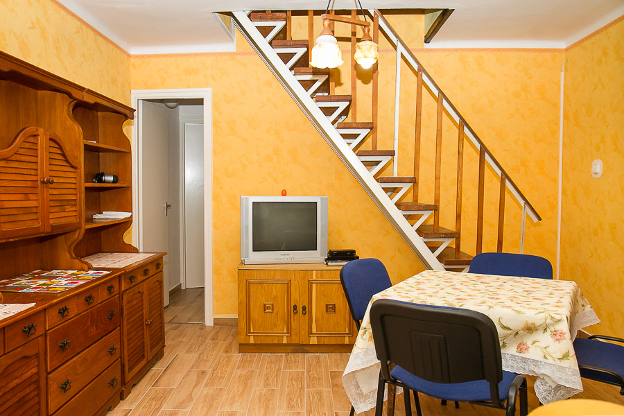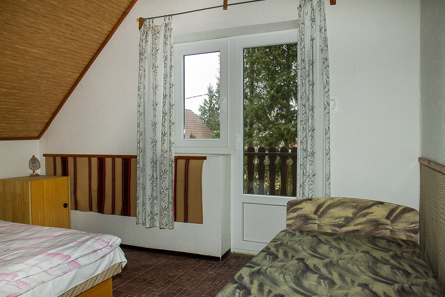 Emelet: Egy kétágyas szoba, egy háromágyas szoba, WC, balkon.