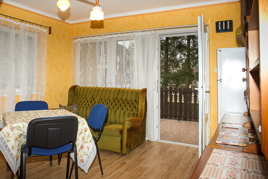 Földszint: Nappali étkezővel, konyha, fürdőszoba, zuhanyzó, WC, fedett terasz.